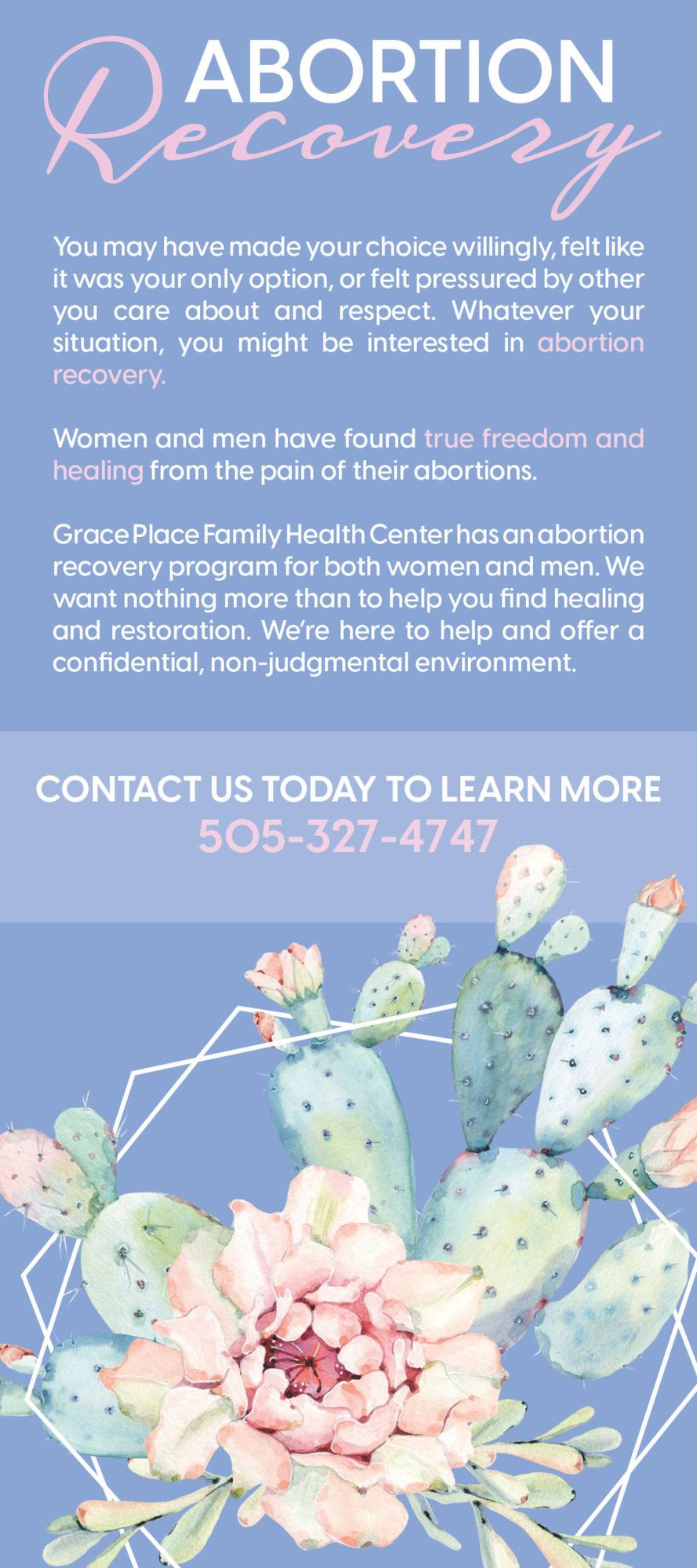 Grace Place Family Health Center has an abortion recovery program for both women and men. We want nothing more than to help you find healing and restoration. We’re here to help and offer a confidential, non-judgmental environment.