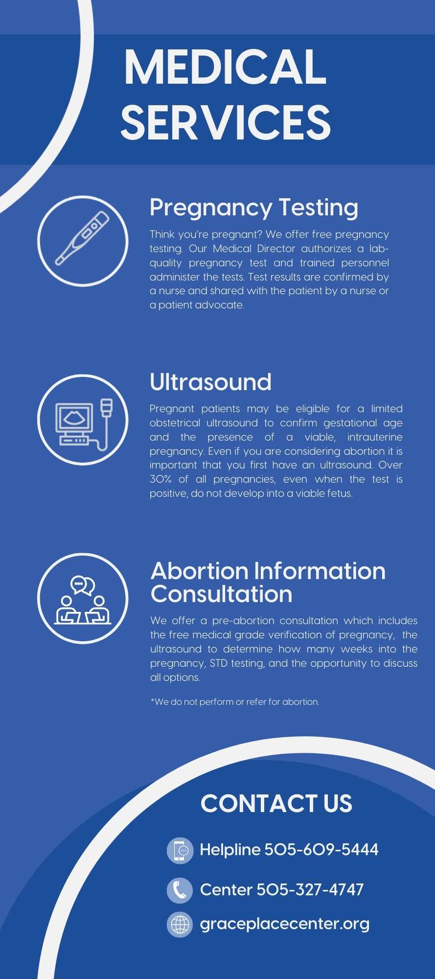 * We provide information about abortion, but we do not provide or refer for abortion services.